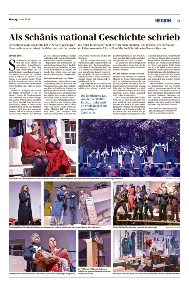 Freilichttheater "D'Stund vo dä Zuekunft" Linth Zeitung vom 2.Mai 2022